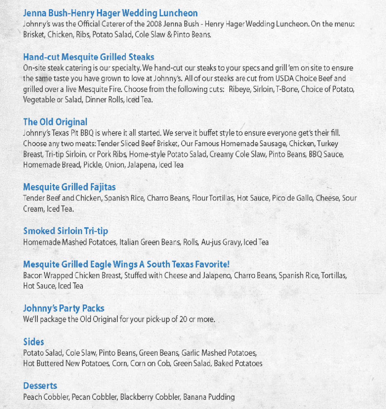 Planning an event? That can be a lot of work, but Johnny's Steaks & Bar-Be-Que can help. If you don't want to worry about making any food, get our catering services in Salado, TX. We can serve BBQ & steaks that you and your guests will love.